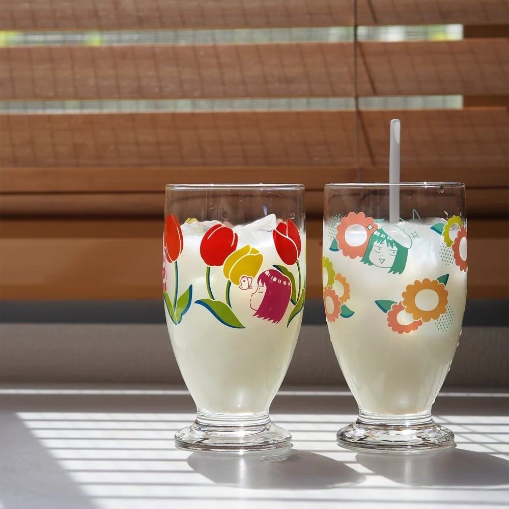 アデリアレトロでお馴染み、石塚硝子様とスキップとローファーのコラボグラスです。 ガーベラ柄とチューリップ柄の2種類をご用意。